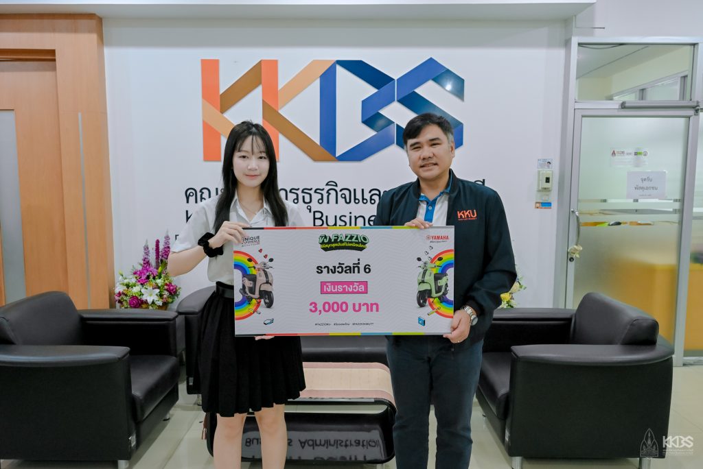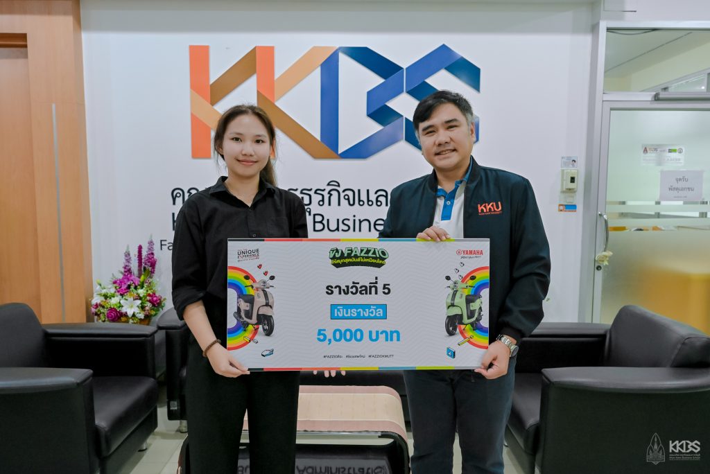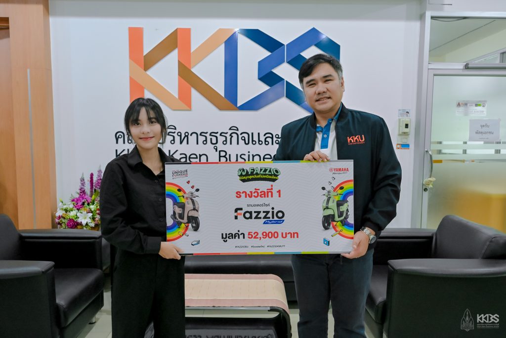 The Faculty of Business Administration and Accountancy, Khon Kaen University, extends its congratulations to the undergraduate students in the Bachelor of Business Administration, specializing in Service and Event Business Management, for winning awards in the highly creative TikTok video competition, “FAZZIO Challenge: Fun Like No Other.” This event was organized by Atom Studio Co., Ltd., representing Thai Yamaha Motor Co., Ltd., under the supervision of advisor  Ms.Antika Emyaem, Lecturer. The competition results revealed that students from the Faculty of Business Administration and Accountancy, Khon Kaen University, received the following awards: 1st Prize: Received a NEW YAMAHA FAZZIO Hybrid Connected Smart Key Version motorcycle, valued at 52,000 THB. The award went to Miss Chonthorn Tantipoolpol.