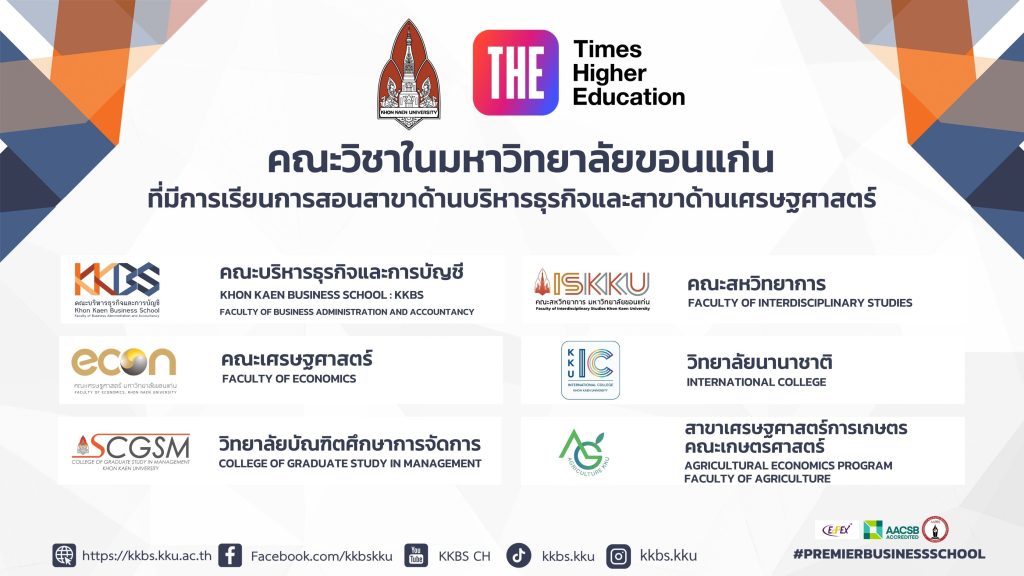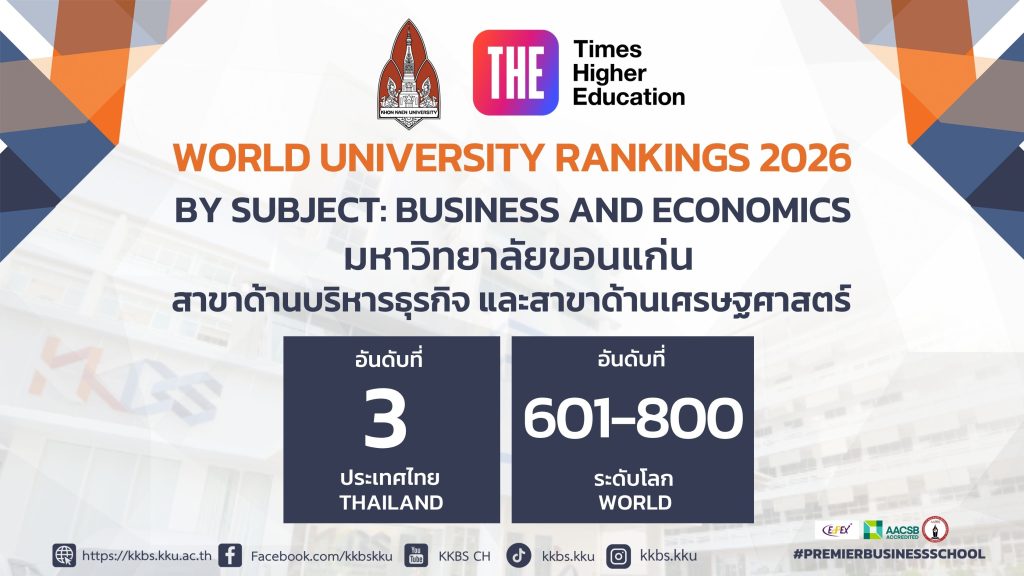 This achievement marks the university’s continued success in meeting global academic standards. The ranking is a result of the combined efforts of several faculties and colleges, including the Faculty of Business Administration and Accountancy (KKBS), Faculty of Economics (ECON), College of Graduate Study in Management (MBA), International College (KKUIC), Faculty of Interdisciplinary Studies (ISKKU) and Agricultural Economics Program, Faculty of Agriculture (AG ECON).