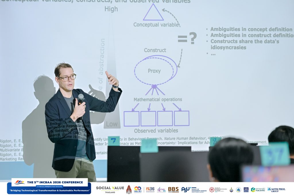 The conference featured a wide range of academic activities, including a hands-on workshop on “Foundations of PLS-SEM in Business Research using SmartPLS,” delivered by Prof. Marko Sarstedt, Ph.D. from Ludwig Maximilian University of Munich, Germany. Another highlight was the academic seminar “Creating Opportunities for Publishing in High Impact Ranking Journals for Young Researchers,” featuring editors-in-chief from leading journals: Prof. Emeritus Ajay Manrai, Ph.D. (Editor-in-Chief, Journal of Global Marketing), Prof. Hiram Ting, Ph.D. (Editor-in-Chief, Young Consumers), and Assoc. Prof. Supawat Meeprom, Ph.D. (Editor-in-Chief, KKBS Journal).