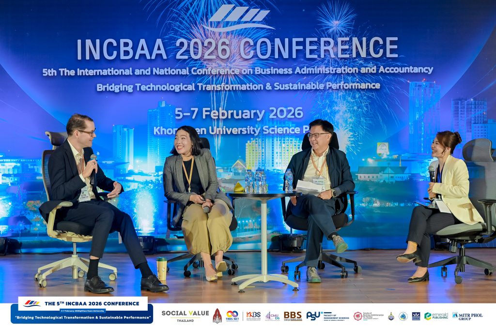 From 5–7 February 2026, the Faculty of Business Administration and Accountancy, Khon Kaen University (KKBS), hosted the International and National Conference on Business Administration and Accountancy 2026 (INCBAA 2026) under the theme “Bridging Technological Transformation & Sustainable Performance.” The conference was held at the Faculty of Business Administration and Accountancy and the Khon Kaen University Science Park.