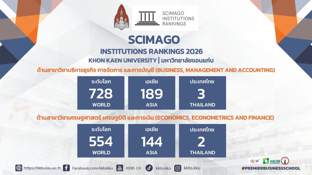 มข.พุ่งอันดับสู่ TOP 3 ด้าน Business, Management and Accounting และขึ้นแท่นอันดับ 2 ด้าน Economics, Econometrics and Finance จากการจัดอันดับ SCImago 2026