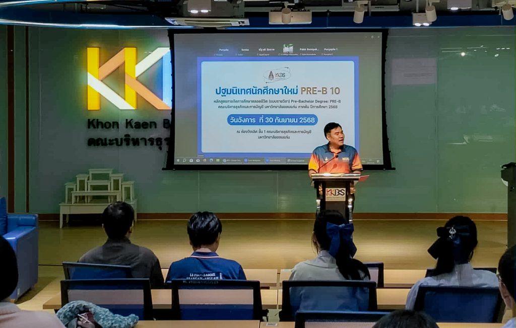 On September 30, 2025, the Faculty of Business Administration and Accountancy, Khon Kaen University, organized an orientation program for students enrolled in the KKBS PRE-B (Pre-Bachelor Degree) Lifelong Learning Program for the 2025 academic year (Batch 10). This program offers a pre-bachelor degree path with accumulated credits, attracting over 134 students participating both onsite and online. The event was honored by Assistant Professor Dr. Pongsutti Phuensane, Dean of the Faculty of Business Administration and Accountancy, who presided over the opening ceremony, providing valuable insights and learning guidance to the participants. Following this, Dr.Pongphan Sathatip , Associate Dean for Industrial Relations and Sustainability, delivered a lecture on “Lifelong Learning (Course-Based) Bachelor’s Program at the Faculty of Business Administration and Accountancy.” The objective was to help students understand the curriculum structure, the credit bank system, and to plan their studies aligned with the Lifelong Learning concept.