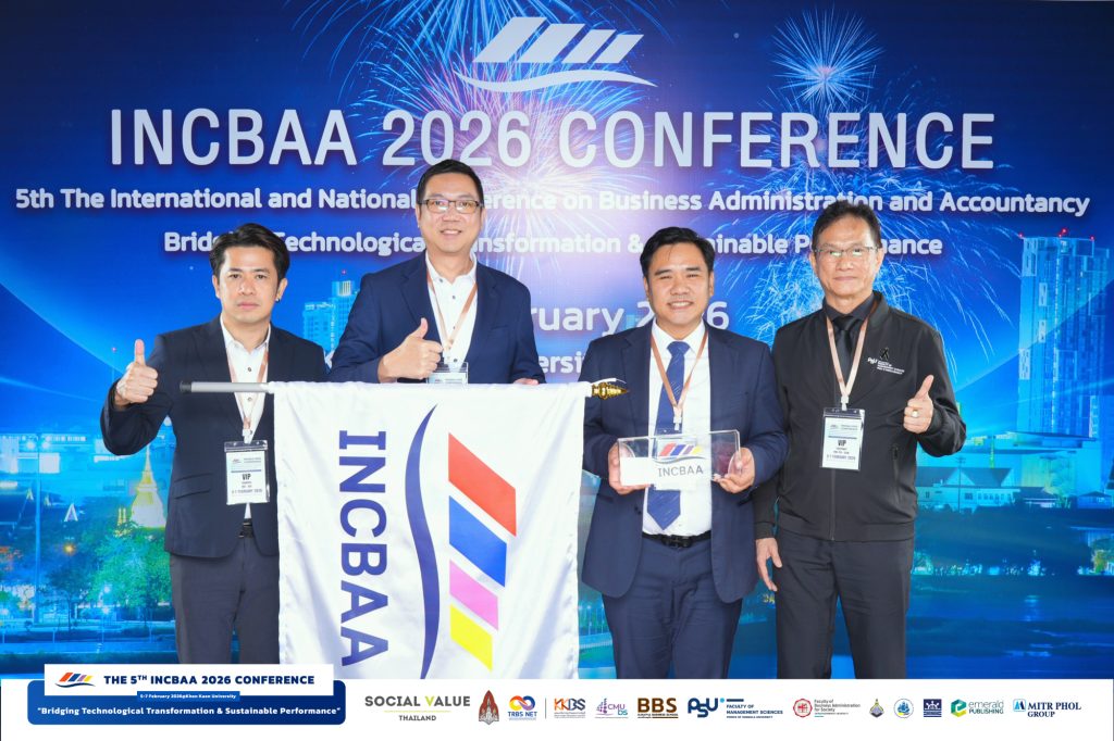 ระหว่างวันที่ 5 – 7 กุมภาพันธ์ 2569 คณะบริหารธุรกิจและการบัญชี มหาวิทยาลัยขอนแก่น จัดงานการประชุมวิชาการระดับชาติและนานาชาติ ด้านบริหารธุรกิจและการบัญชี 2569 The International and National Conference on Business Administration and Accountancy 2026 (INCBAA 2026) ภายใต้หัวข้อ “Bridging Technological Transformation & Sustainable Performance” ณ คณะบริหารธุรกิจและการบัญชี และ อุทยานวิทยาศาสตร์ มหาวิทยาลัยขอนแก่น โดยมี ผู้ช่วยศาสตราจารย์ ดร.พงษ์สุทธิ พื้นแสน คณบดีคณะบริหารธุรกิจและการบัญชี เป็นประธานกล่าวเปิดงาน และ รองศาสตราจารย์ ดร.ศุภวัตร มีพร้อม ประธานหลักสูตรบริหารธุรกิจบัณฑิต สาขาวิชาการจัดการธุรกิจบริการและอีเว้นท์ ในฐานะประธานจัดงาน กล่าวรายงานวัตถุประสงค์การจัดประชุม