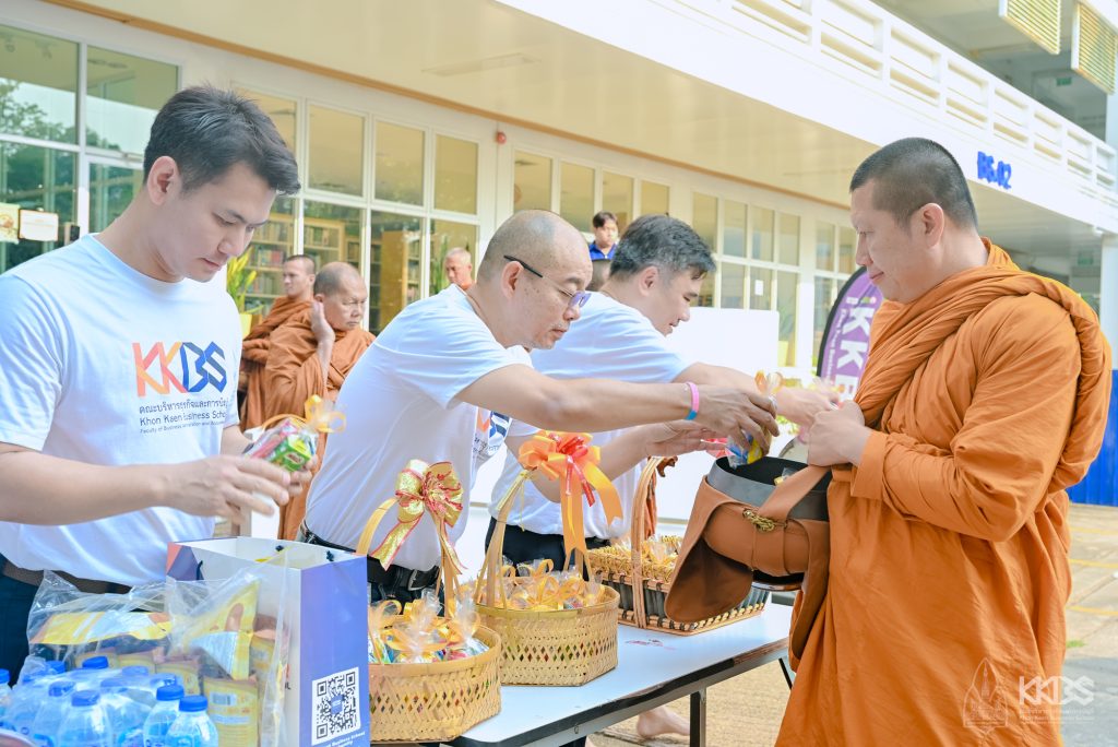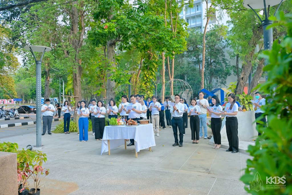 โดยกิจกรรมเริ่มต้นด้วยคณะผู้บริหาร คณาจารย์ บุคลากร และนักศึกษา ประกอบพิธีสักการะเจ้าพ่อมอดินแดง ณ ศาลเจ้าพ่อมอดินแดง มหาวิทยาลัยขอนแก่น และพิธีบวงสรวงสักการะพระภูมิเจ้าที่คณะบริหารธุรกิจและการบัญชี เพื่อไหว้สักการะ ถวาย ดอกไม้ ธูปเทียน และเครื่องบวงสรวงต่าง ๆ เพื่อขอพรให้ท่านช่วยปกป้องคุ้มครองบุคลากรตลอดจนนักศึกษาทุกคนประสบแต่ความสุขความเจริญ จากนั้นเป็นพิธีทำบุญตักบาตรและพิธีเจริญพระพุทธมนต์ โดยมีพระเดชพระคุณ พระครูสิริสารเมธี เจ้าคณะอำเภอหนองเรือ (ธ) วัดสว่างดอนยาง เป็นประธานฝ่ายสงฆ์ พร้อมด้วยพระสงฆ์จากวัดป่าแสงอรุณ จำนวน 9 รูป เมตตาออกรับบิณฑบาต จากคณะผู้บริหาร คณาจารย์ บุคลากร และผู้เข้าร่วมงาน ณ ลานอเนกประสงค์ ชั้น 1